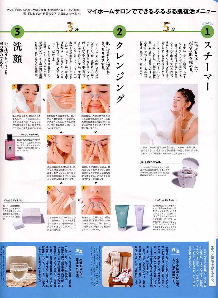 <おこもり美容を始めよう。>にて、週末にお家でできる“おこもり美容”についてお話させていただきました。 「マイホームサロンでできるぷるぷる肌復活メニュー」の各工程について詳しくレクチャーさせていただいております。 是非ご覧ください。(P.18〜P.23に掲載)
