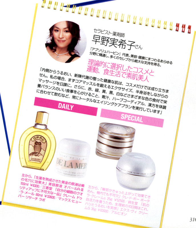美容・健康にまつわるあらゆる分野に精通し、多くのセレブから絶大な支持を得る早野実希子の愛用コスメと、運動・食生活についてご紹介していただきました。日頃のケアの参考として、是非ご覧ください。