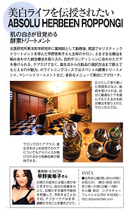 日焼けした後の、肌のコンディションや目的に合わせたケアを受けられるサロンとしてAbsolu Herbeenを紹介していただきました。このホワイトニングコースはお肌の状態に合わせた酵素トリートメント、マシーントリートメントなど、多彩なメニューで美白にアプローチしていきます。