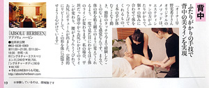 「・・・4本の手が休むことなく動き、独特のタッチで今まで経験したことのないような感覚なんです。まるで、体の形を粘土細工のように変えてくれるよう。一度で見た目に分かるほど体のラインが交わします。私の場合、平坦だった背中からお尻にかけてのラインが変わり、腰がきちんとくびれて、お尻にボリュームが出ました。・・・」