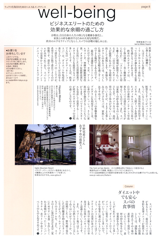 また、最近のスパに見られるユニークなプログラムやメディカルスパ、さらにはスパキュイジーヌをご紹介。